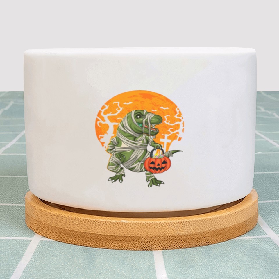 Buy stunning Mummy T-Rex Dinosaur Trick Or Treat Halloween Plant Pots or see more Plant Pots products at Printblur right now to receive many amazing discounts!