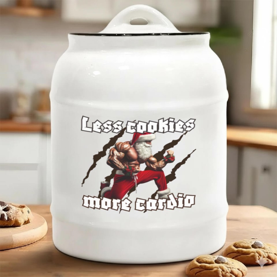 You are viewing an exclusive and elegant product Muscle Santa Ceramic Cookie Jars – Christmas Workout Apparel For belong theme Ceramic Cookie Jars at Printblur
