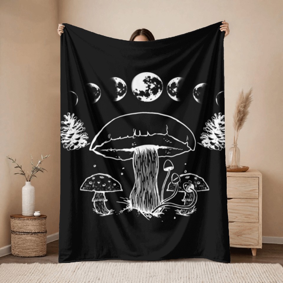 You are contemplating one of the best-selling products Mushroom Aesthetic Cute Fungi Lover Cottagecore Throw Blankets For Black belong theme Throw Blankets at Printblur