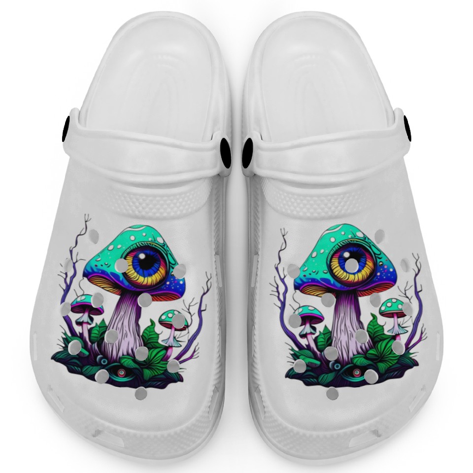 The item hot trend you're looking at is Mushroom With One Eye Clogs For Kids WHITE belong theme Clogs at Printblur