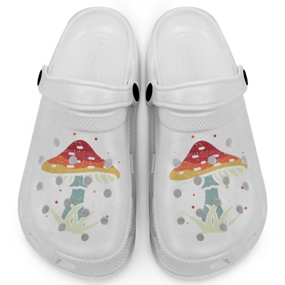 The item hot trend you're looking at is Mushrooms Vintage Retro Mushroom Hunter Gift Clogs For Kids WHITE belong theme Clogs at Printblur