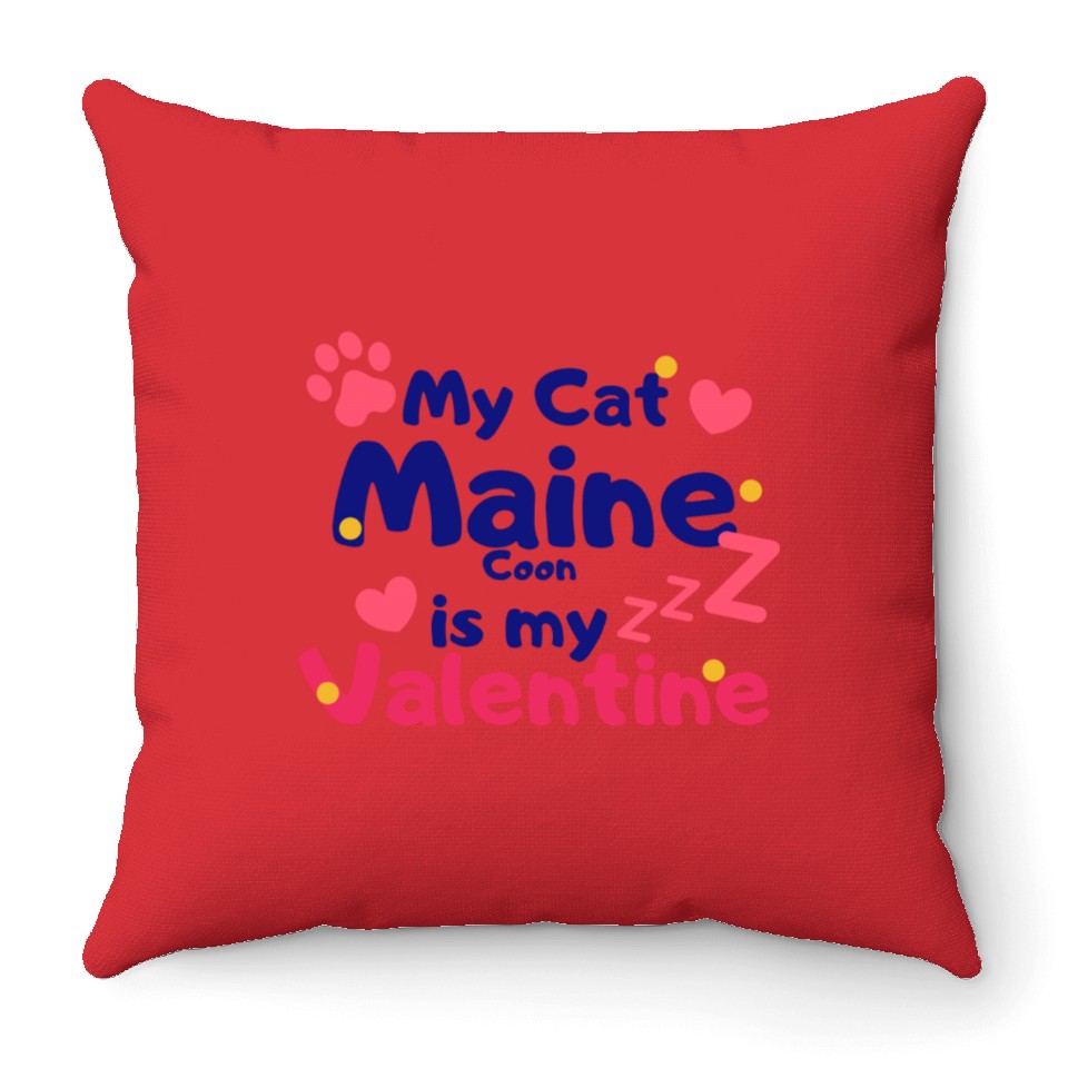 Shop for attractive My Cat Maine Is My Valentine Throw Pillows or see more Throw Pillows products on https://printblur.com right now!