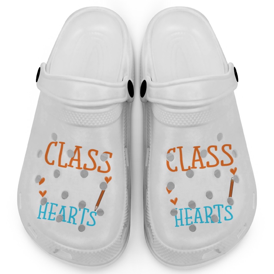 The product unique design you searched for is My Class Is Full Of Sweethearts Clogs For Kids WHITE belong theme Clogs at Printblur