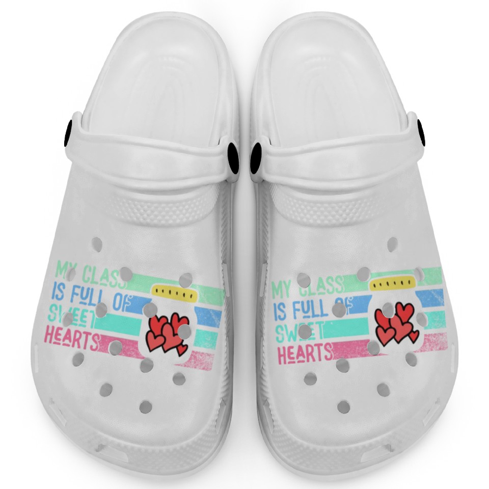 You're looking at the eye-catching product My Class Is Full Of Sweethearts Clogs For Kids WHITE belong theme Clogs at Printblur