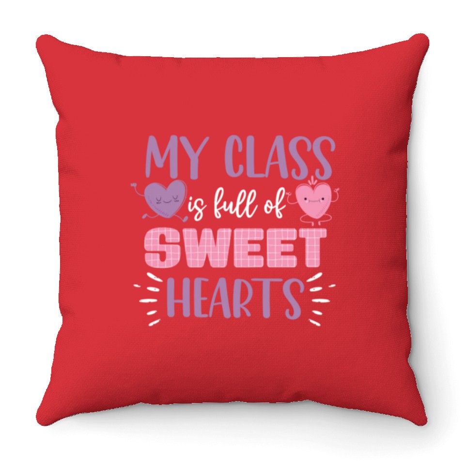 The product unique design you searched for is My Class Is Full Of Sweethearts Throw Pillows For Cover Only Red belong theme Throw Pillows at Printblur