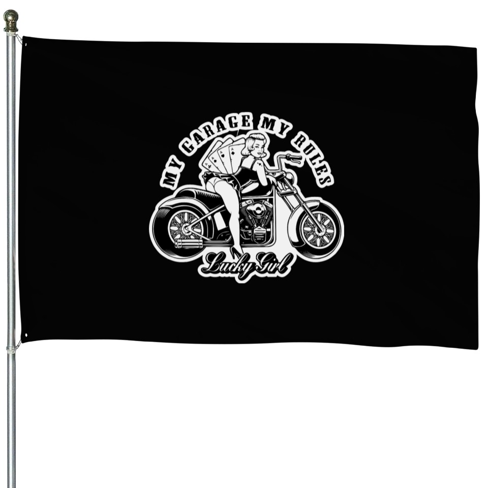 You are shopping for a stunning and trendy product My Garage My Rules Pinup LIKE US ON FACEBOOK # House Flags For Black belong theme House Flags at Printblur