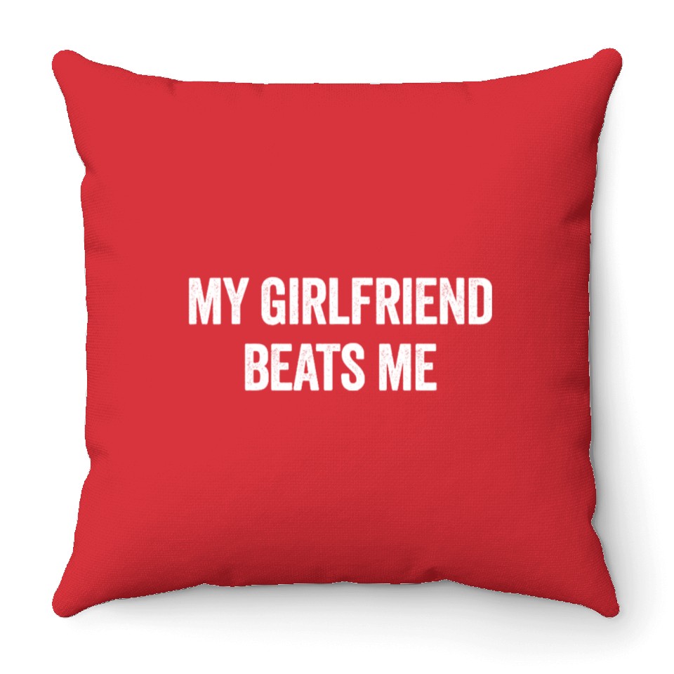 Buy eye-catching My Girlfriend Beats Me Funny Sarcastic Men's Throw Pillows or see more Throw Pillows products at Printblur shop now to explore many surprises from our shop!