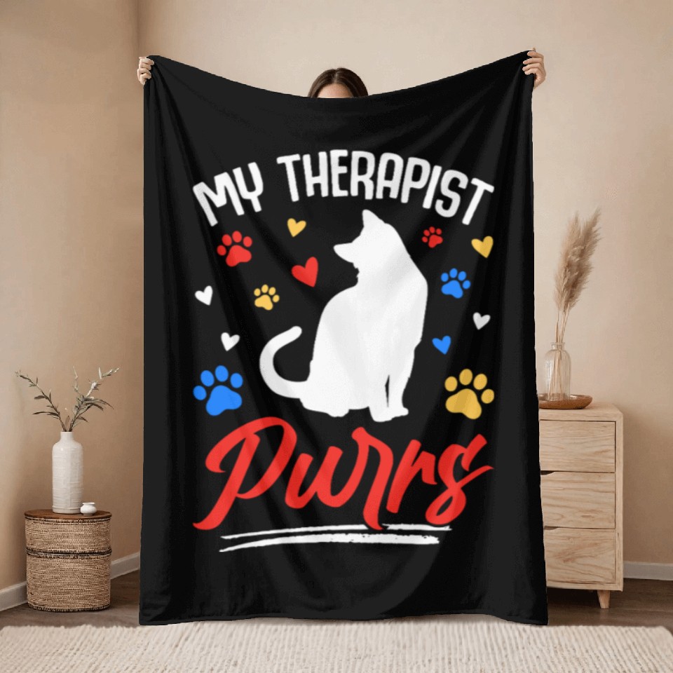 Shop for attractive My Therapist Purrs Cat Lover Throw Blankets or see more Throw Blankets products on https://printblur.com right now!