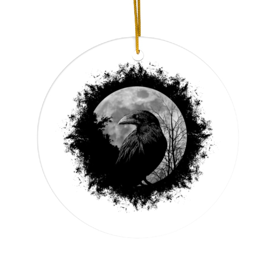 You are seeing a unique and impressive product Mystic Black Crow Artwork Full Moon Raven Ceramic Ornaments For WHITE belong theme Ceramic Ornaments at Printblur