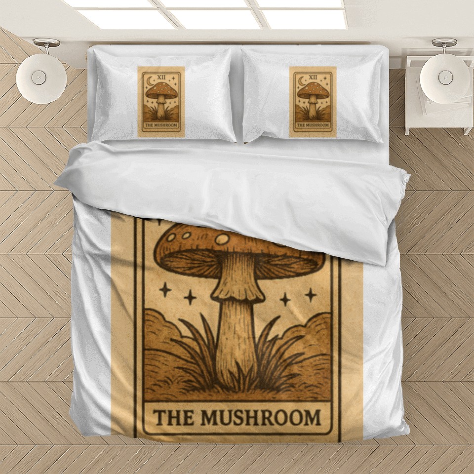 You are shopping for a stunning and trendy product Mystic Mushroom Tarot Card Design Bedding Sets For WHITE belong theme Bedding Sets at Printblur
