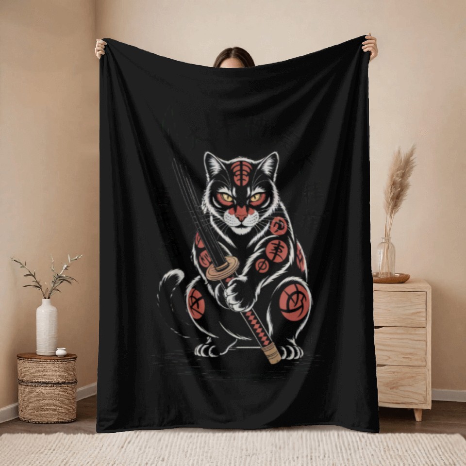 You are viewing an exclusive and elegant product Mythical Japanese Warrior Cat Design Throw Blankets For Black belong theme Throw Blankets at Printblur
