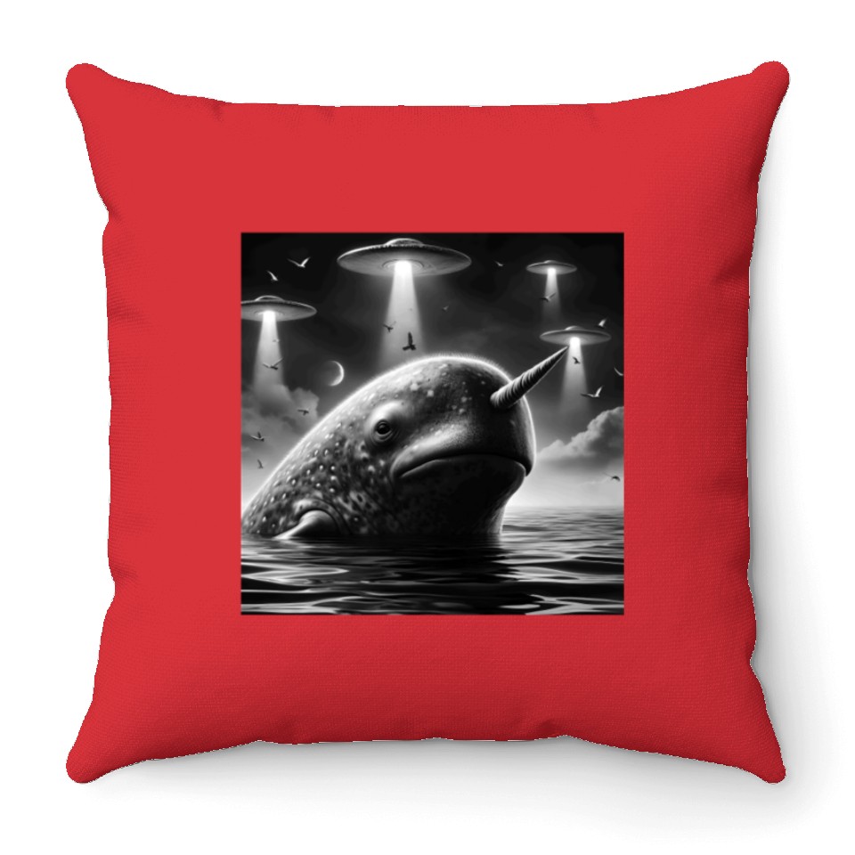 The product unique design you searched for is Narwhal Funny Graphic Selfie with UFOs Weird Alien Throw Pillows For Cover Only Red belong theme Throw Pillows at Printblur