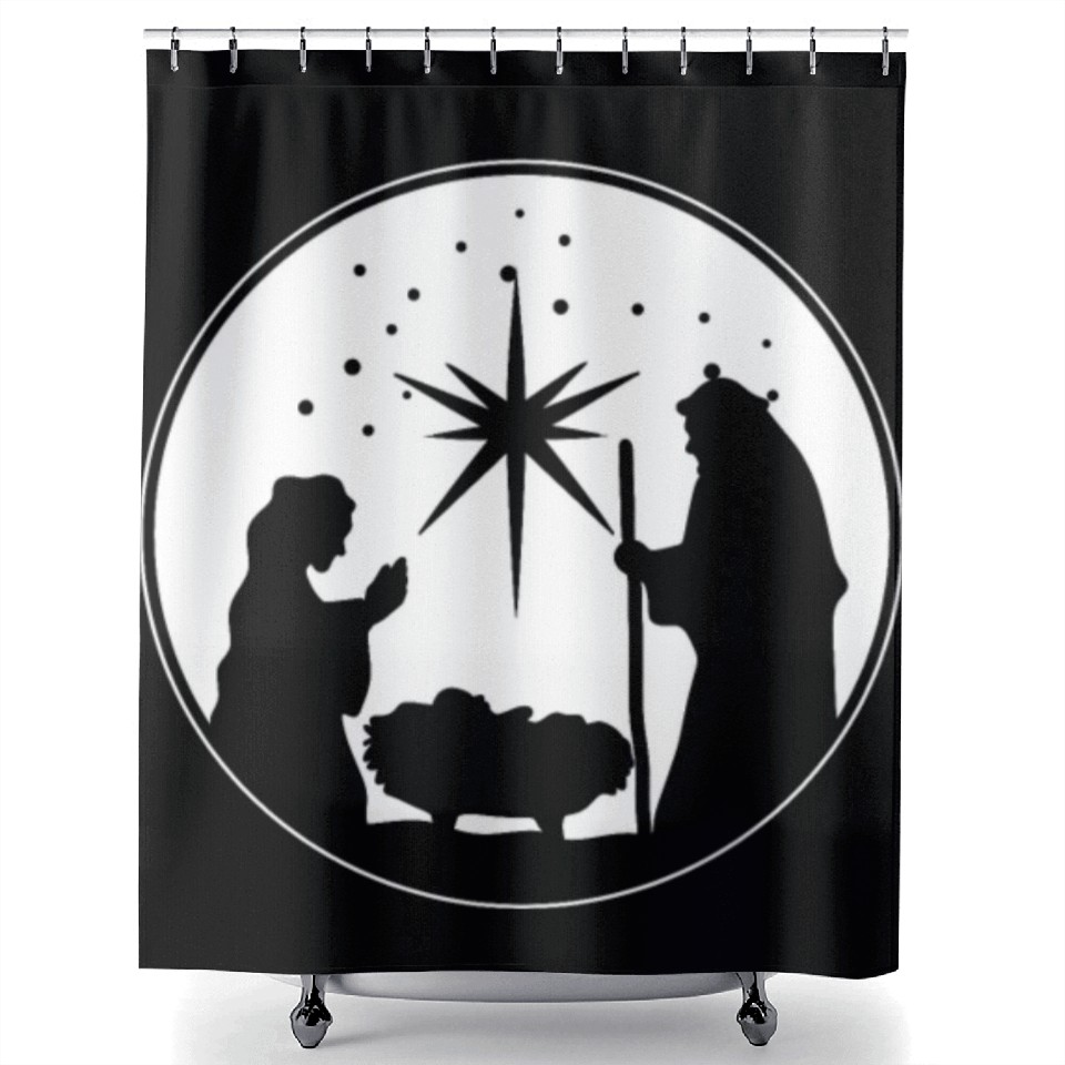 Buy eye-catching Nativity Scene Silhouette Christmas Market Vendor Shower Curtains or see more Shower Curtains products at Printblur shop now to explore many surprises from our shop!