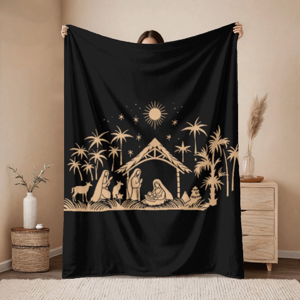 You are viewing an exclusive and elegant product Nativity Scene with Mary Joseph Baby Jesus Throw Blankets For Black belong theme Throw Blankets at Printblur