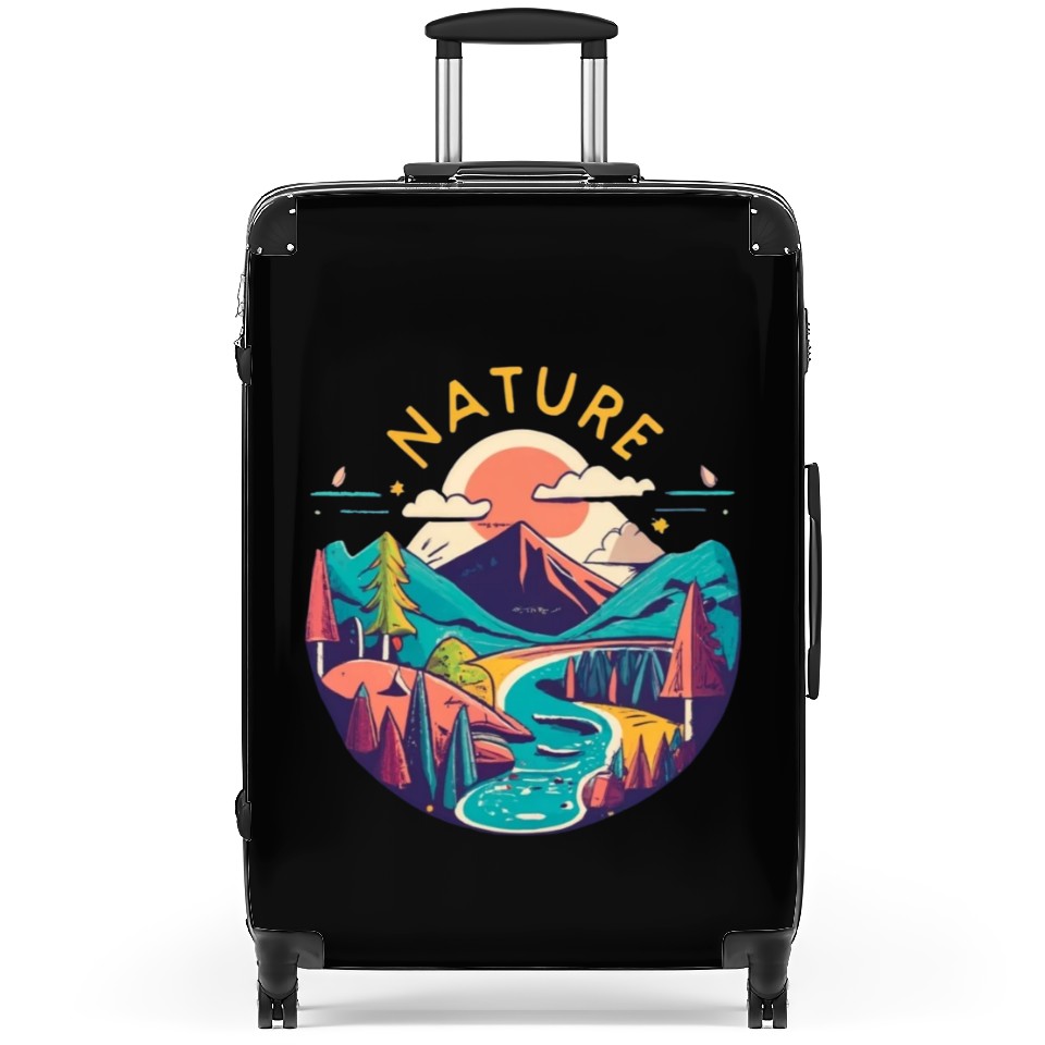 Own fascinating Nature circular graphic with mountains, trees and Suitcases or see more Suitcases products now from Printblur shop to enjoy your shopping time!