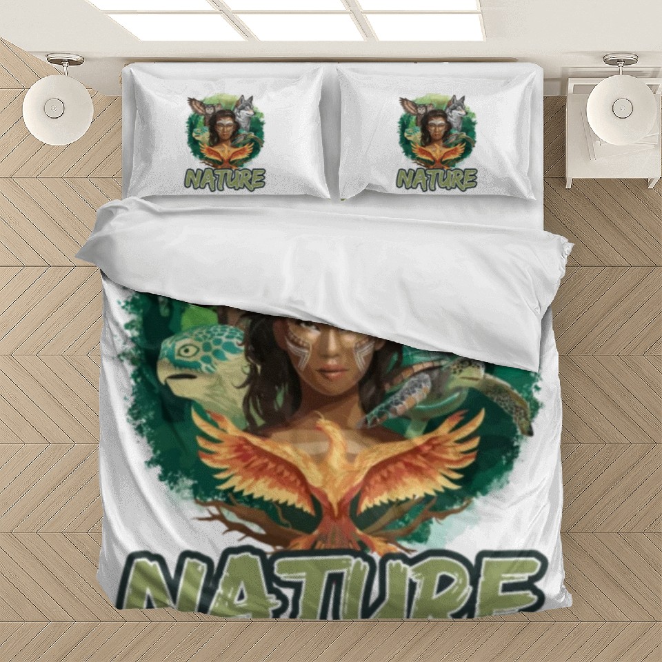 You are seeing a unique and impressive product Nature-Inspired Wolf Owl Turtle Phoenix Woman Bedding Sets For WHITE belong theme Bedding Sets at Printblur
