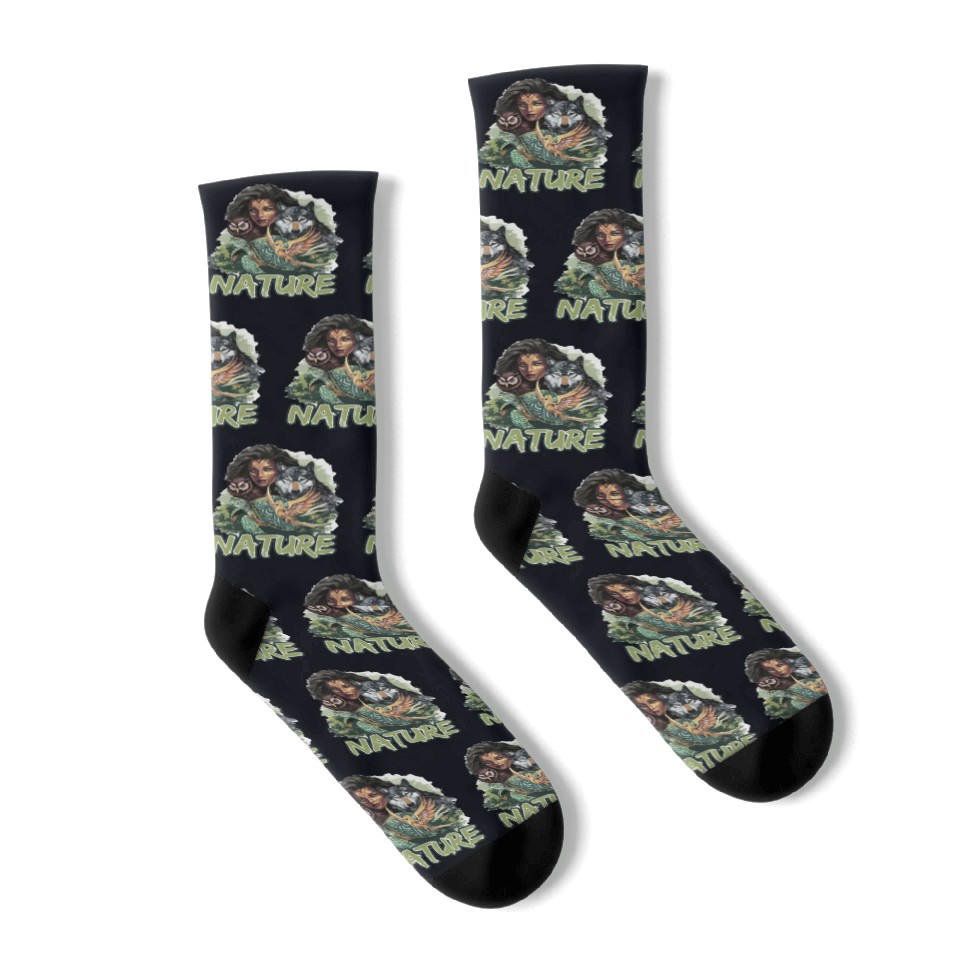 You're looking at the eye-catching product Nature-Inspired Wolf Owl Turtle Phoenix Woman Socks For Black belong theme Socks at Printblur