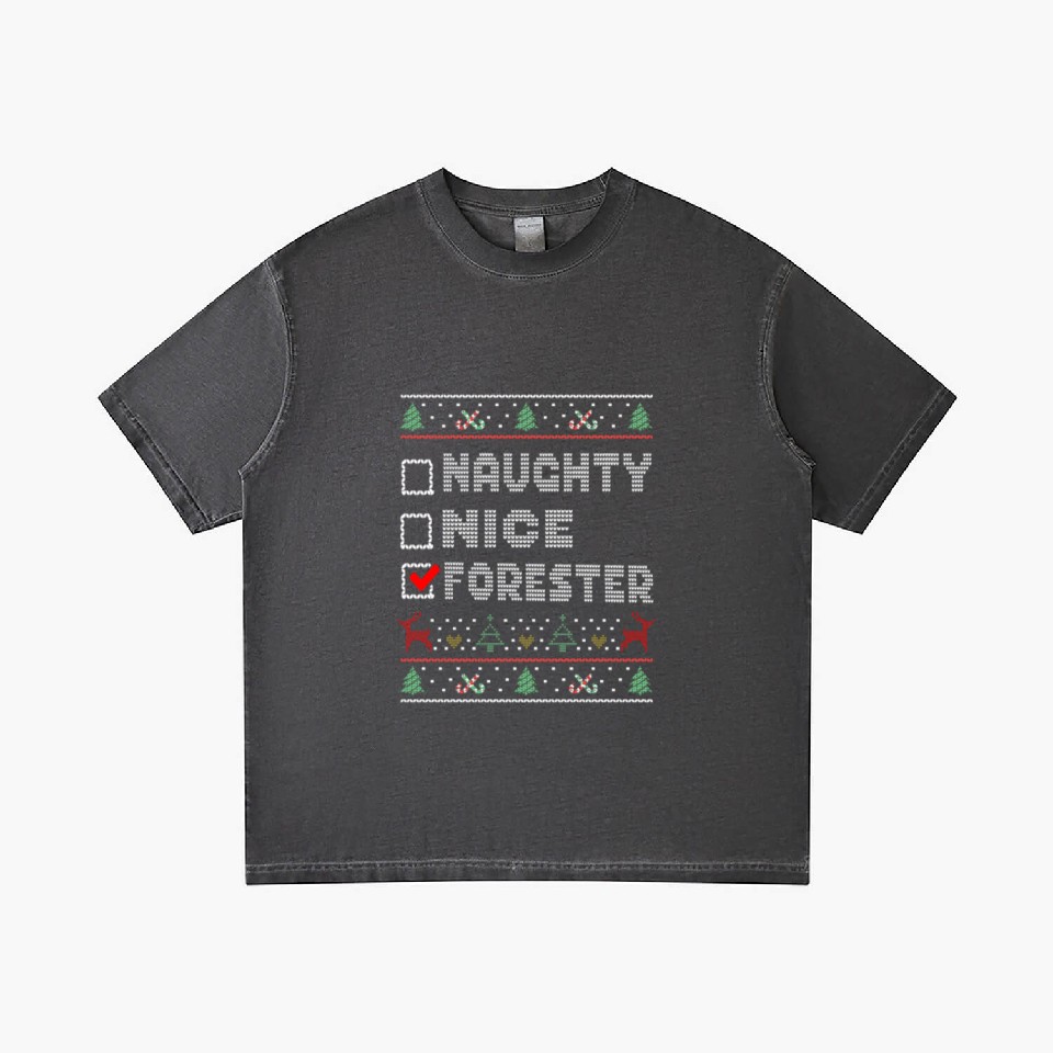The product unique design you searched for is Naughty Nice Forester, Matching Christmas Group Gradient T Shirts For Men Washed Black belong theme Gradient T-Shirts at Printblur
