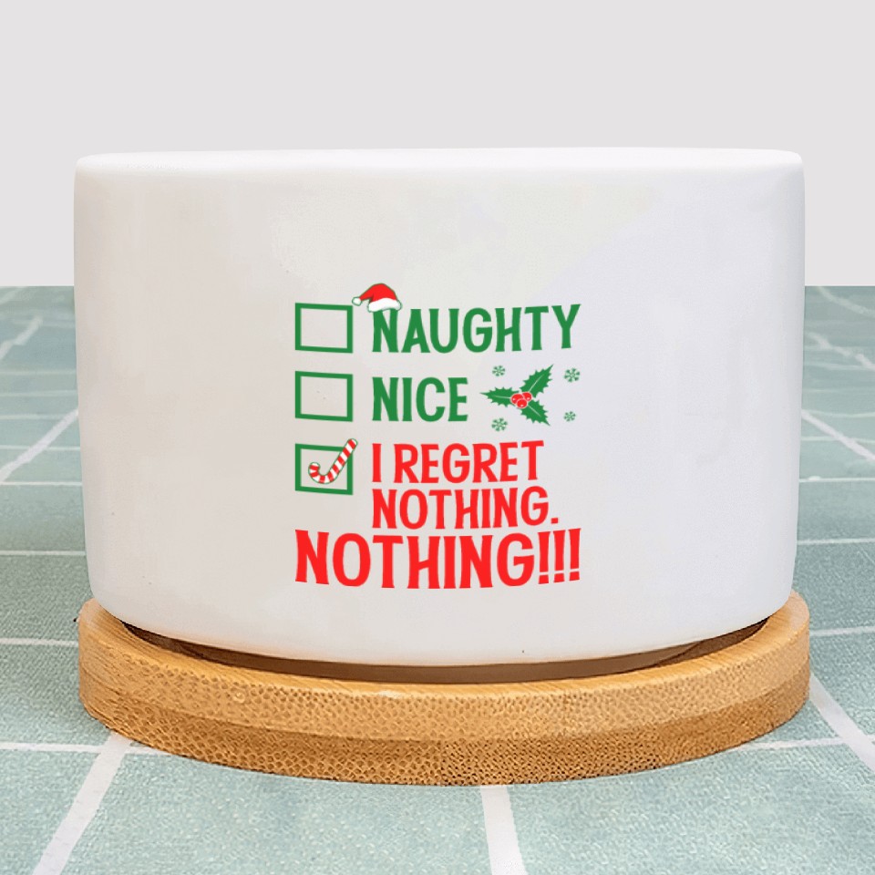 Buy stunning Naughty, Nice, No Regrets Christmas Plant Pots or see more Plant Pots products at Printblur right now to receive many amazing discounts!