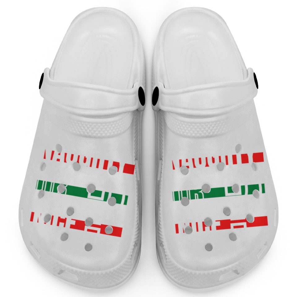 You are viewing an exclusive and elegant product Naughty or Nice? Clogs For Kids WHITE belong theme Clogs at Printblur