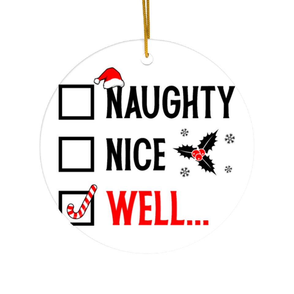 You are viewing an exclusive and elegant product Naughty or Nice Funny Christmas Ceramic Ornaments For WHITE belong theme Ceramic Ornaments at Printblur