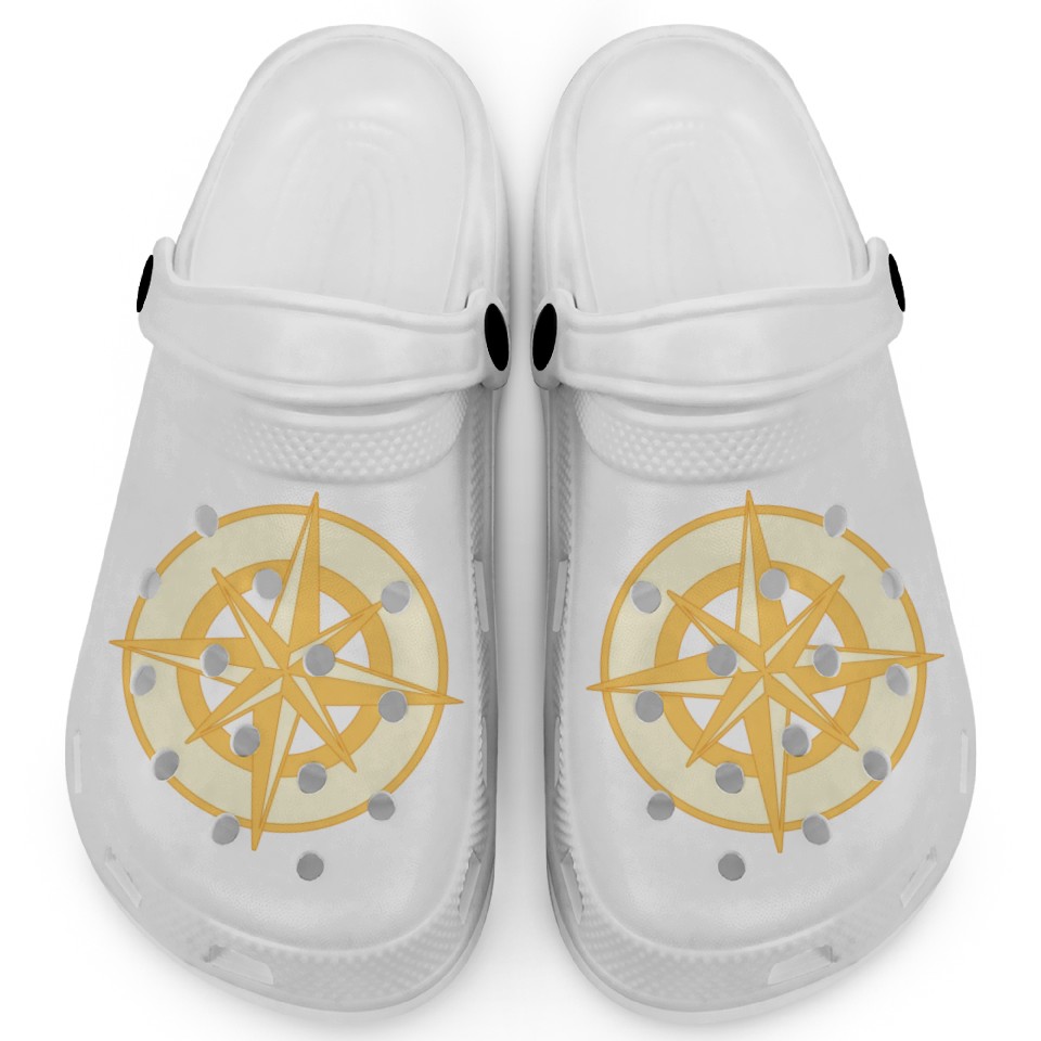 You are viewing an exclusive and elegant product Nautical Compass star / rose, cardinal directions Clogs For Kids WHITE belong theme Clogs at Printblur
