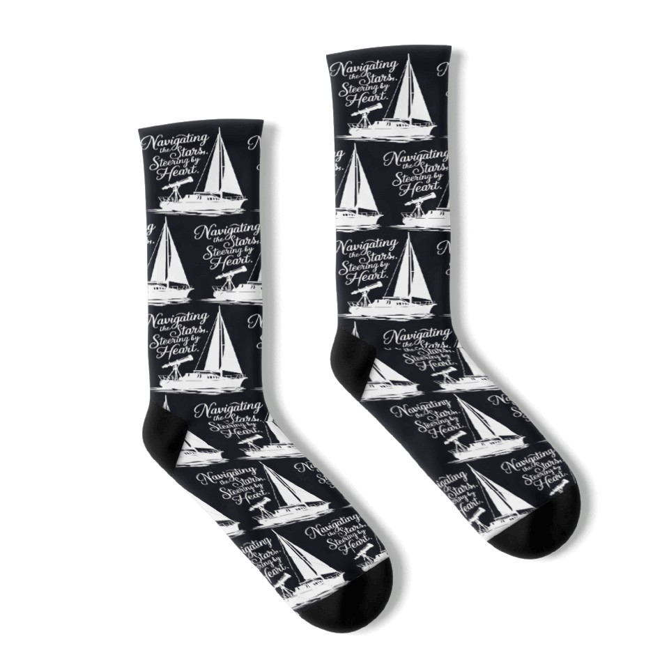 You are viewing an exclusive and elegant product Navigating the Stars, Steering by Heart Socks For Black belong theme Socks at Printblur