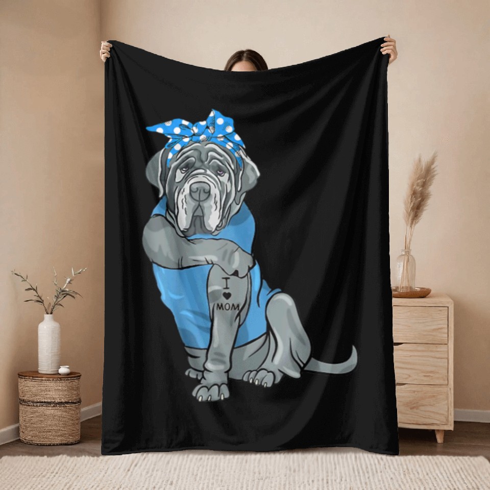 Buy eye-catching Neapolitan Mastiff Dog Tattoo I Love Mom Throw Blankets or see more Throw Blankets products at Printblur shop now to explore many surprises from our shop!