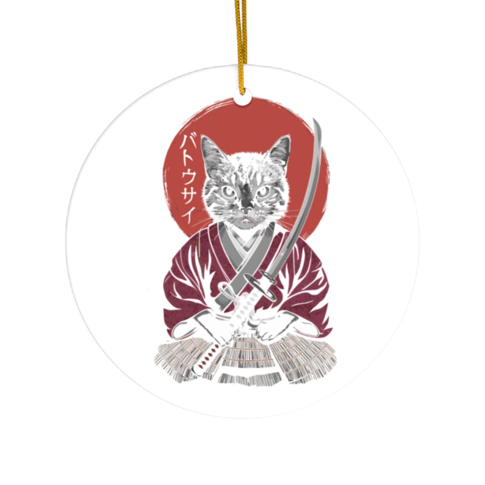You're taking a peek at the product Neko Battousai Samurai Cat Classic Ceramic Ornaments For WHITE belong theme Ceramic Ornaments at Printblur