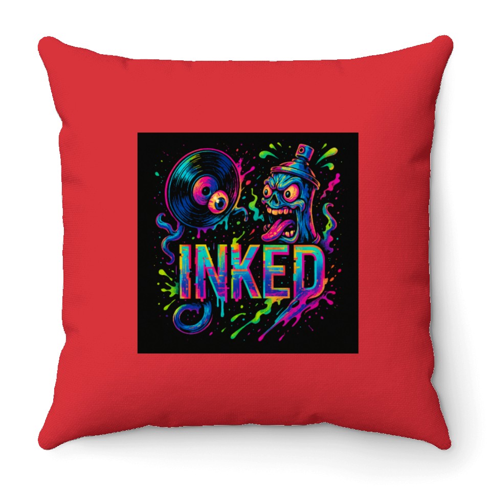 You're taking a peek at the product Neon Graffiti Spray Can with Skull and Turntable Throw Pillows For Cover Only Red belong theme Throw Pillows at Printblur