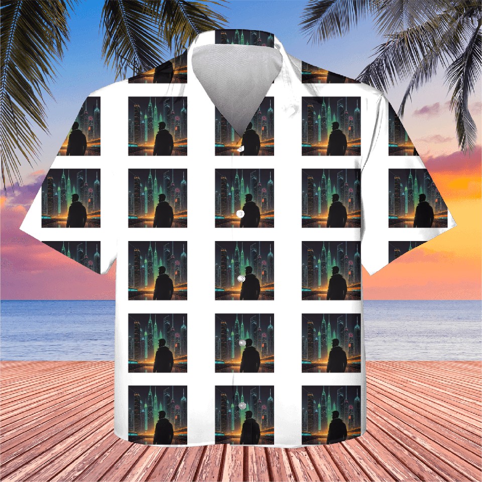 You are contemplating one of the best-selling products Neon Horizon: A Futuristic Cityscape Kids Hawaiians For WHITE belong theme Kids Hawaiians at Printblur