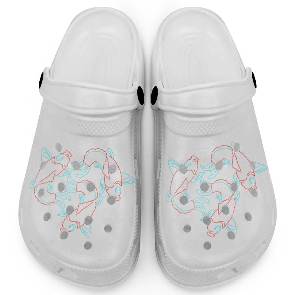 The product unique design you searched for is Neon Koi Fish Clogs For Kids WHITE belong theme Clogs at Printblur