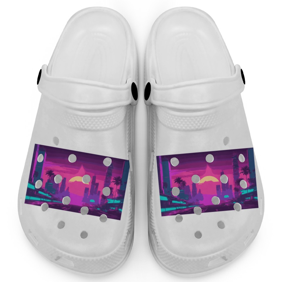Neon Paradise Vaporwave Sunset Vibes Clogs