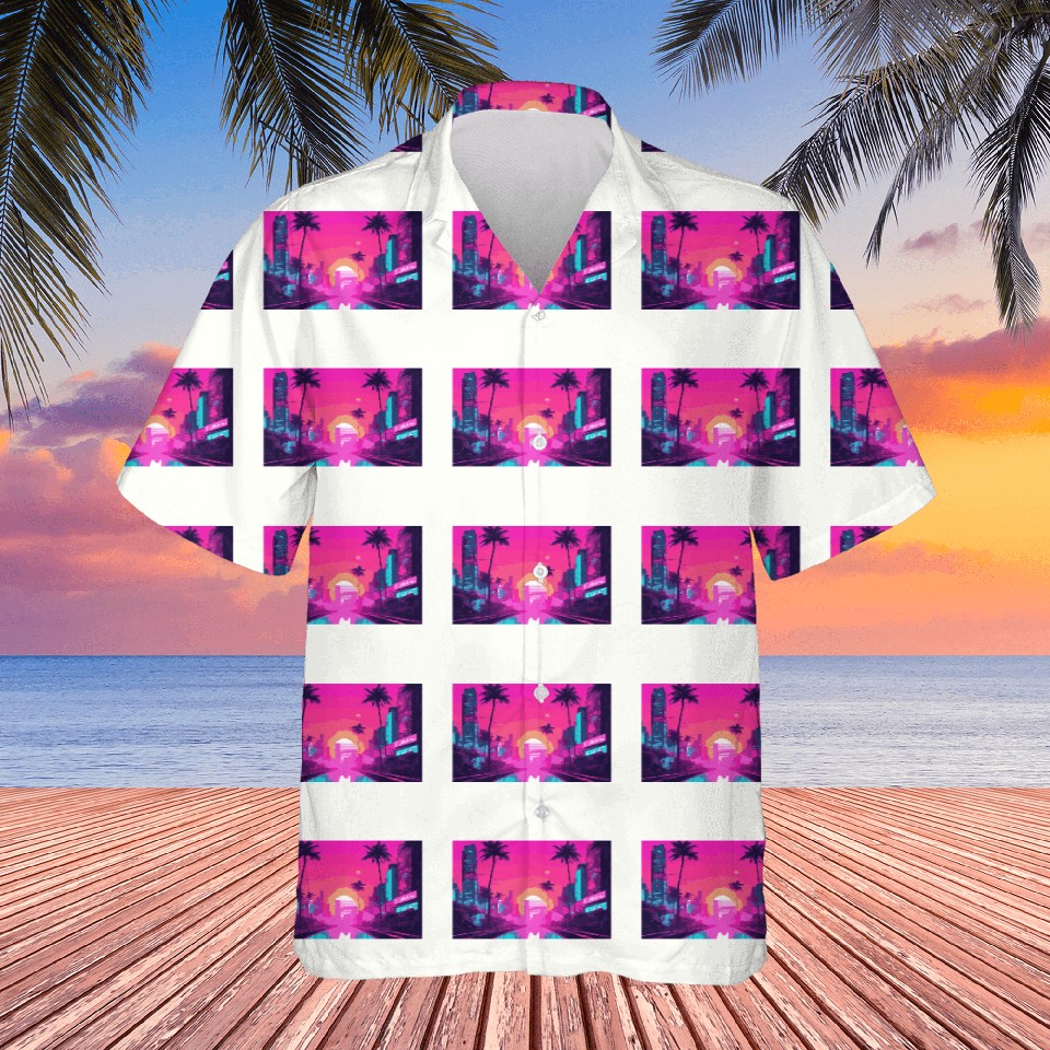 You're looking at the eye-catching product Neon Paradise Vaporwave Sunset Vibes Hawaiians For WHITE belong theme Hawaiians at Printblur