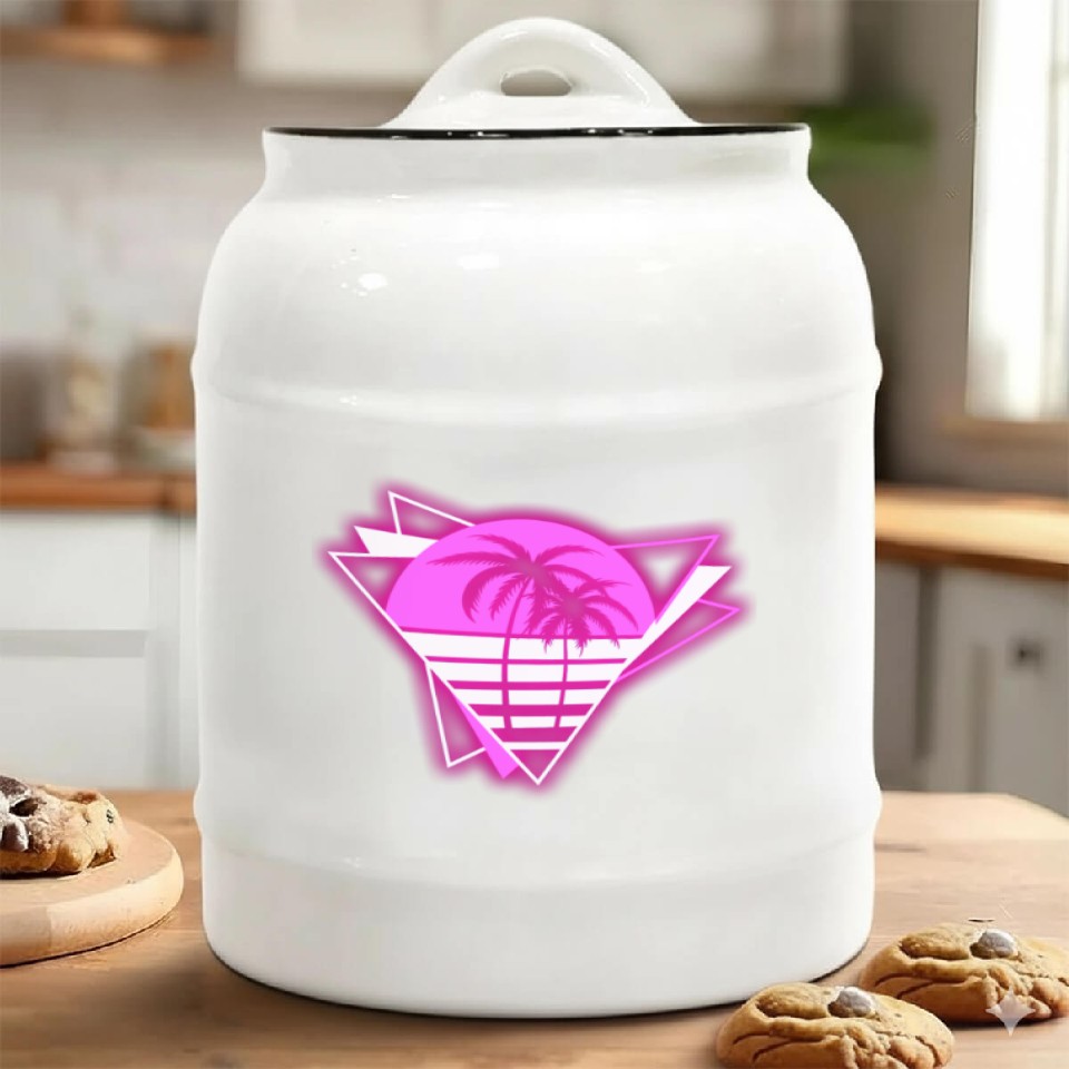 Shop for impressive Neon Paradise: Vibrant Palm Design Ceramic Cookie Jars or see more Ceramic Cookie Jars products right now on Printblur to enjoy your happiness!