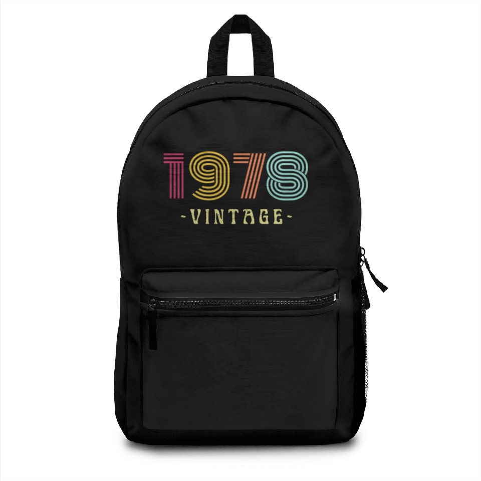 You are viewing an exclusive and elegant product Neon Rainbow Retro Birthday Year Vintage 1978 Backpacks For Black belong theme Backpacks at Printblur