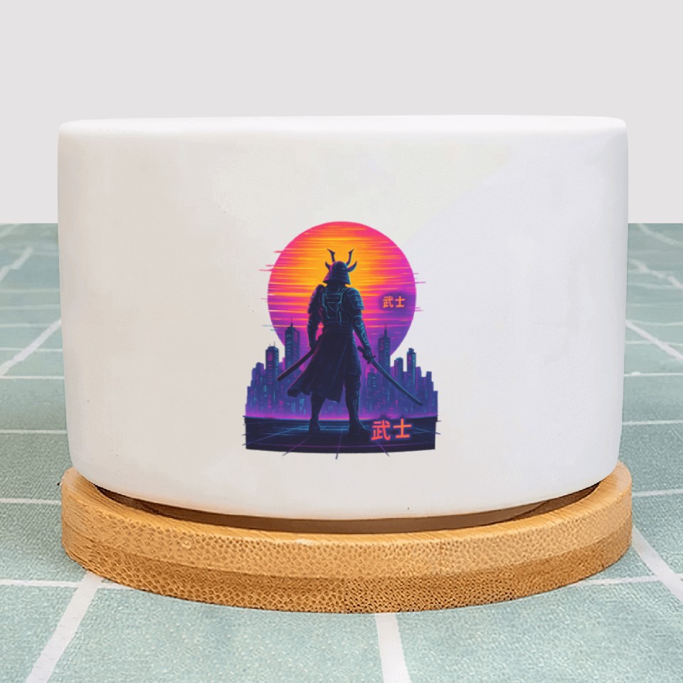 You are viewing an exclusive and elegant product Neon Samurai - Cyberpunk Warrior Art Plant Pots For WHITE belong theme Plant Pots at Printblur