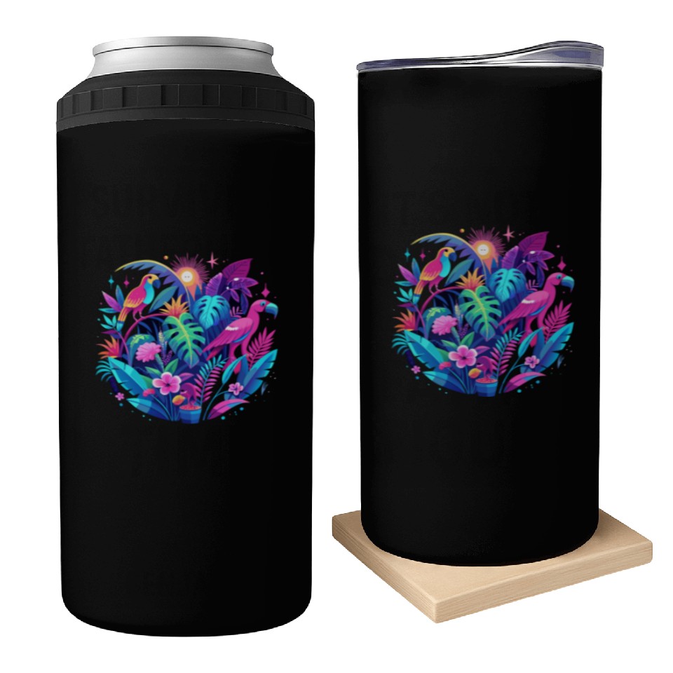 Neon Tropical Jungle at Night – Bright Pink Leaves Can Coolers