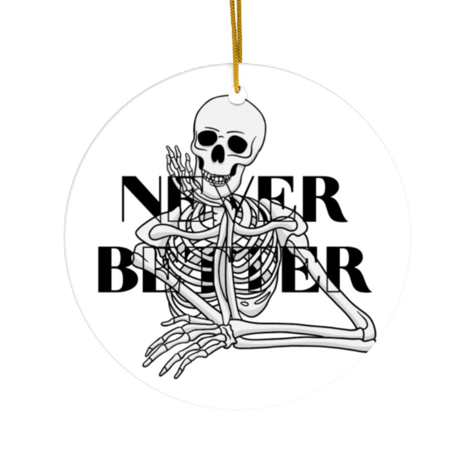 Shop for attractive Never Better Skeleton sticker & Ceramic Ornaments or see more Ceramic Ornaments products on https://printblur.com right now!