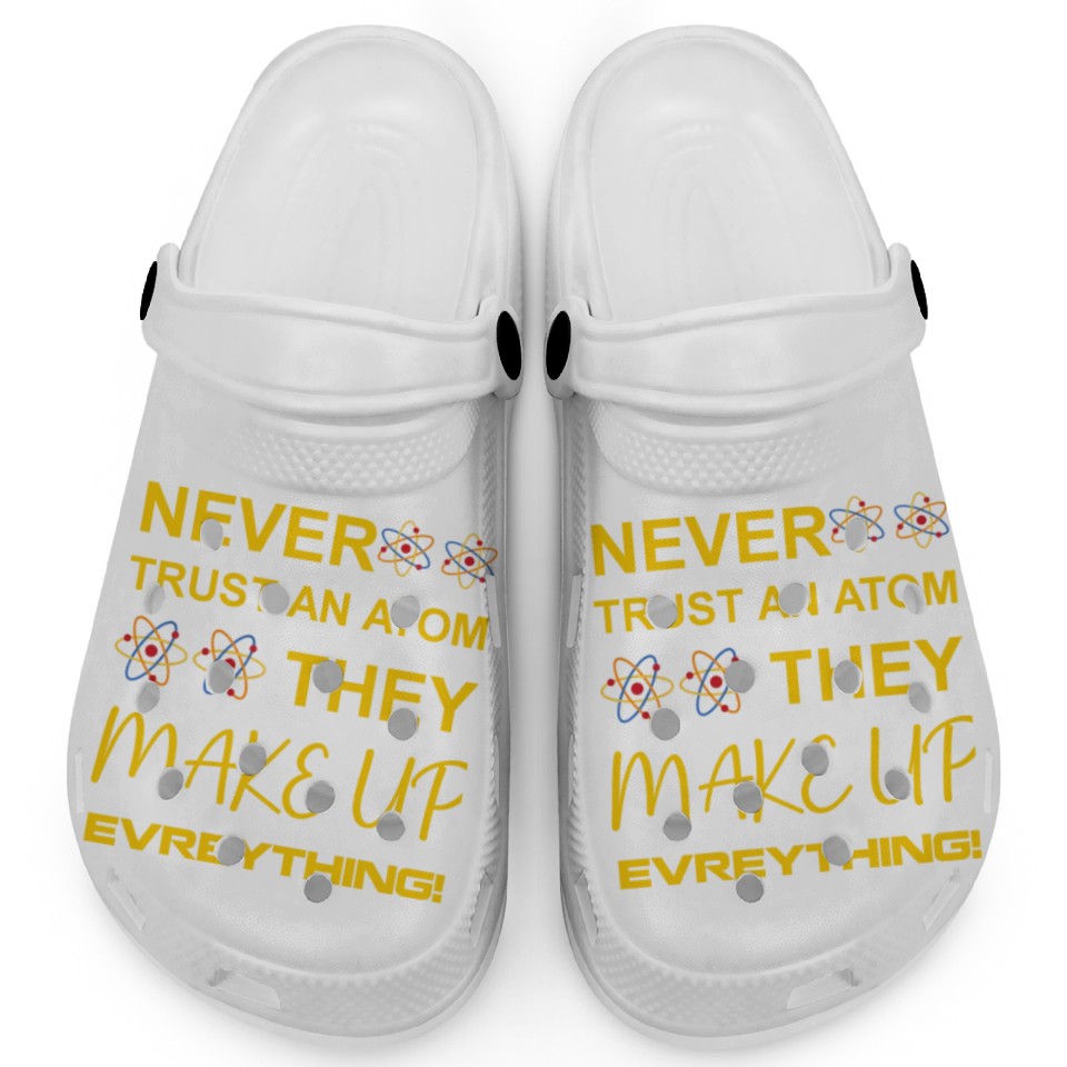 Shop for attractive Never trust an atom, they make up everything Clogs or see more Clogs products on https://printblur.com right now!
