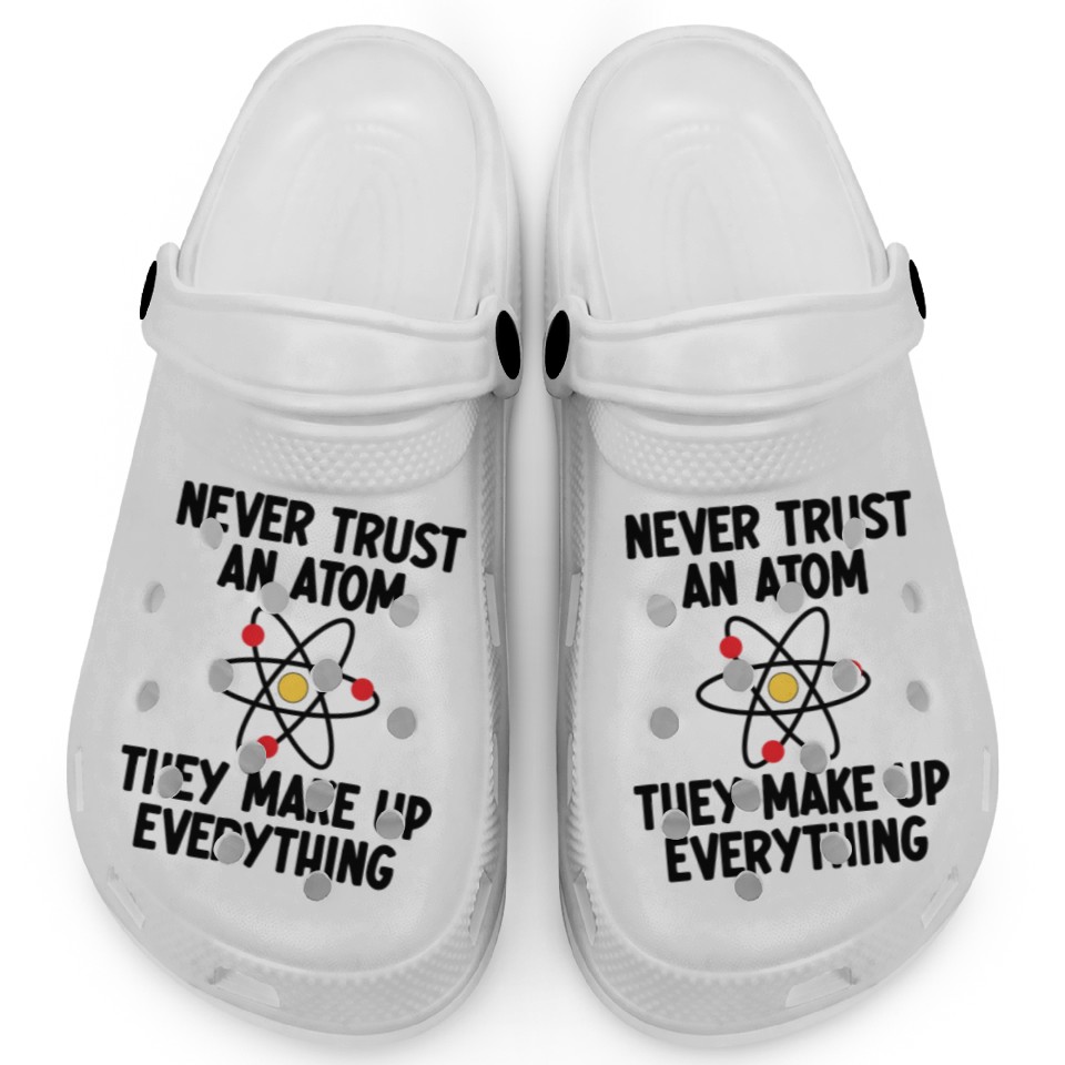 Shop for impressive Never Trust An Atom. They Make Up Everything. Clogs or see more Clogs products right now on Printblur to enjoy your happiness!