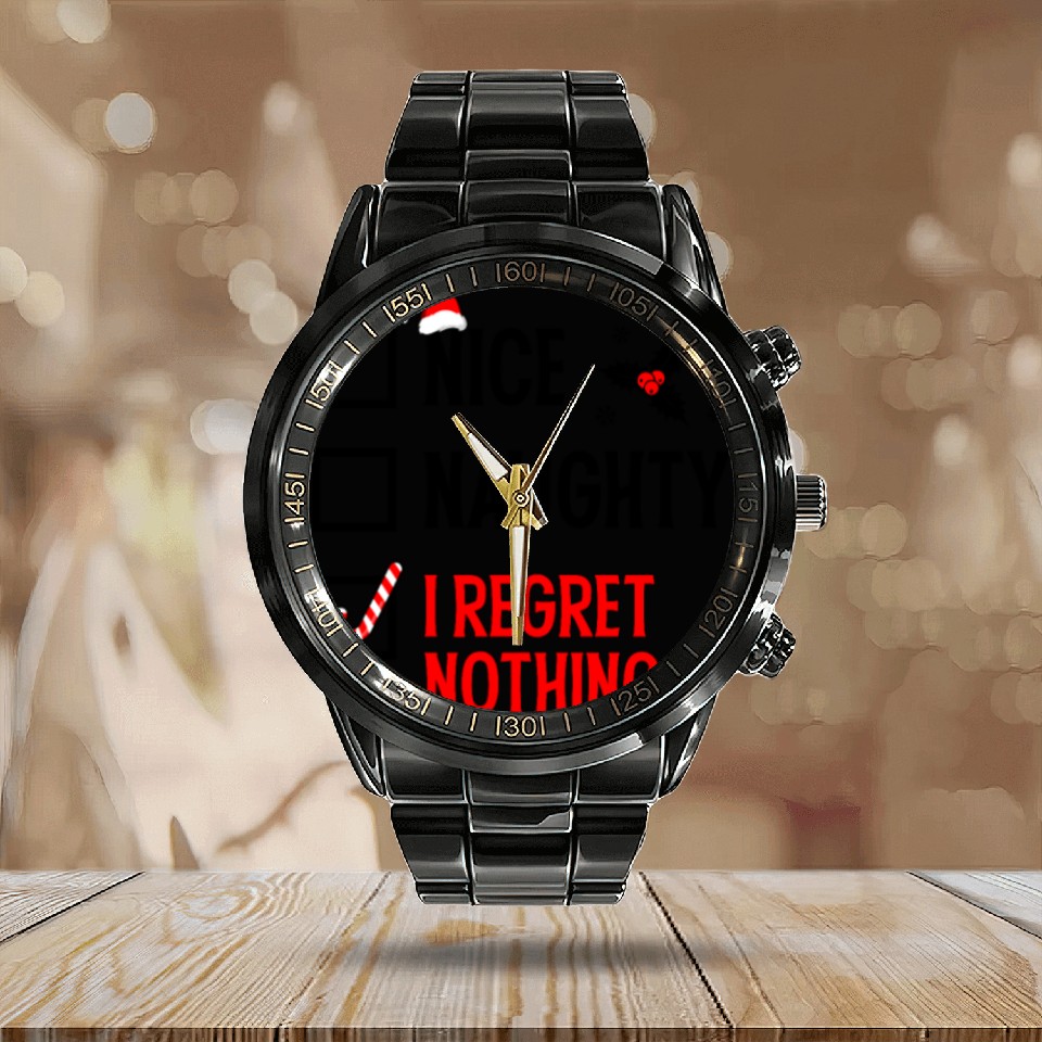 The item hot trend you're looking at is Nice Naughty I Regret Nothing Christmas Calendar Steel Band Watch For Black belong theme Calendar Steel Band Watch at Printblur