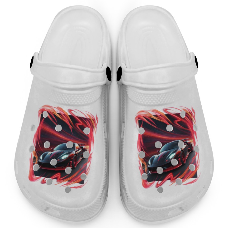 You're looking at the eye-catching product Nice sport car, red storm and effects Clogs For Kids WHITE belong theme Clogs at Printblur