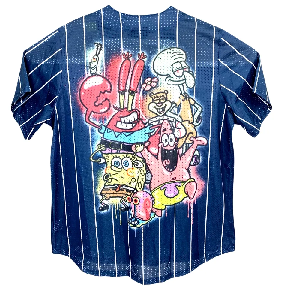 You're searching for a one-of-a-kind product Nick 90s SpongeBob SquarePants Baseball Jersey Shirt Mens Pinstripe Blue XL For Men belong theme Baseball Jerseys at Printblur