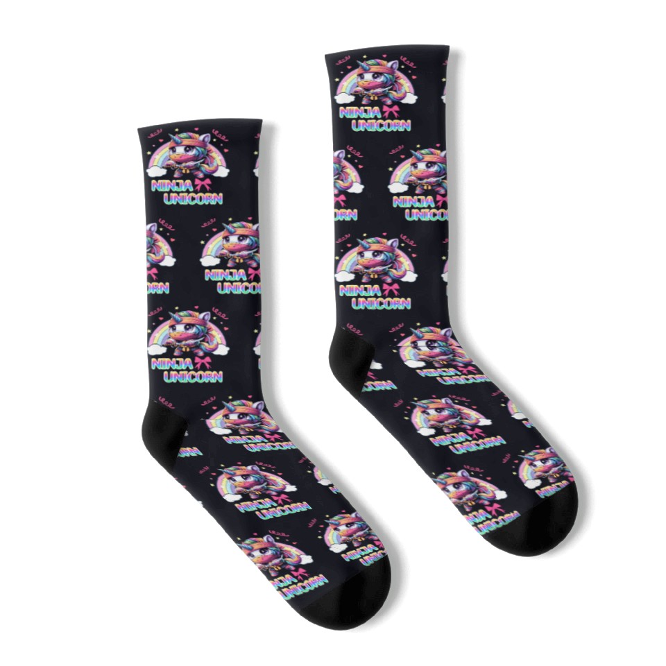 Buy eye-catching Ninja Unicorn Cute Rainbow Unicorn Fighter Socks or see more Socks products at Printblur shop now to explore many surprises from our shop!