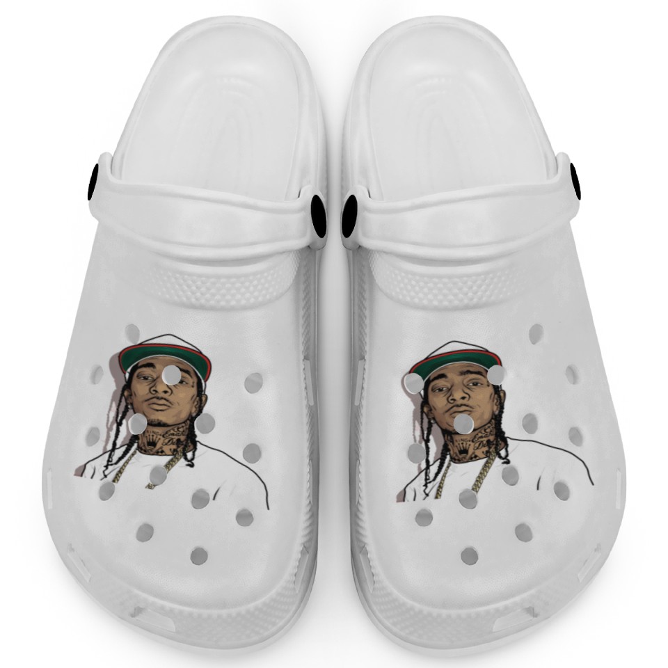 The product unique design you searched for is Nipsey Hussle Rest in Peace Clogs For Kids WHITE belong theme Clogs at Printblur