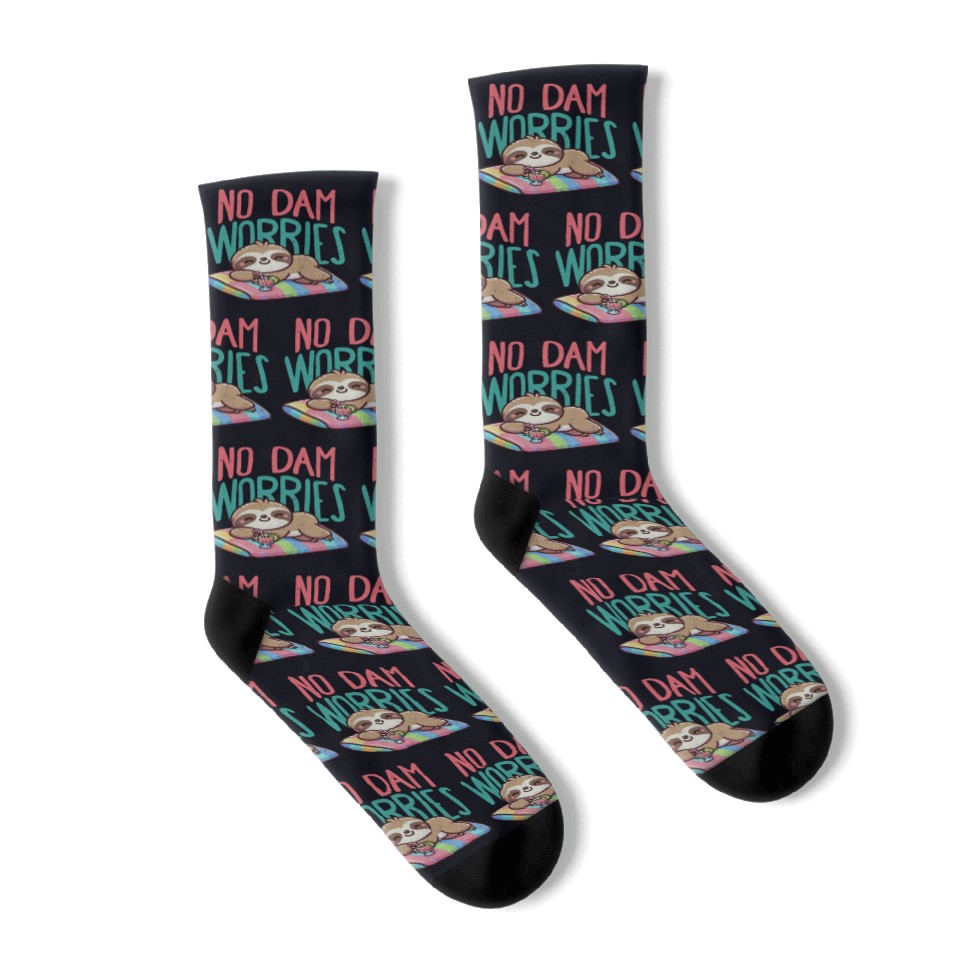 Buy stunning No Dam Worries Sloth on The Beach Relax Socks or see more Socks products at Printblur right now to receive many amazing discounts!