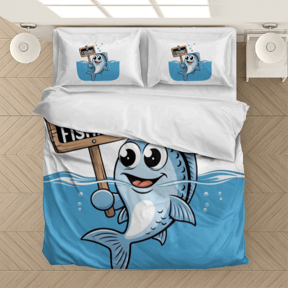 You're looking at the eye-catching product No Fishing – Cartoon Fish Joke Bedding Sets For WHITE belong theme Bedding Sets at Printblur