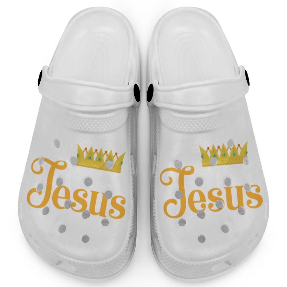 You are viewing one of the trendiest products No Matter Who Is President Jesus Is King Clogs For Kids WHITE belong theme Clogs at Printblur