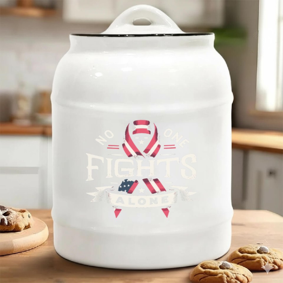 The product unique design you searched for is No One Fights Alone US Family Veteran Awareness Ceramic Cookie Jars For belong theme Ceramic Cookie Jars at Printblur